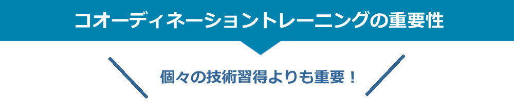 スポーツが上達するためには、ただ練習を重ねればいいというものではないのです。「自分の思ったとおりにカラダを動かすことができる」能力、つまり状況を目や耳など五感で察知し、それを頭で判断し、具体的に筋肉を動かすといった一連の過程をスムースに行うことが必要です。これらの能力をコオーディネーション能力と言います。